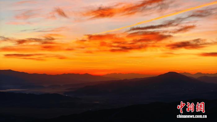 12月6日,位于青海省海北躲族自制州青海湖北岸的共宝山,日出时候,金色阳光撒正在绵延的山峦上,好像1幅自然绘卷渐渐睁开,吸收旅客玩赏挨卡。图为正在共宝山拍摄的日出。刘凯强 摄