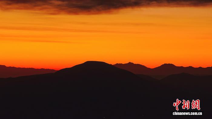 12月6日,位于青海省海北躲族自制州青海湖北岸的共宝山,日出时间,金色阳光撒正在绵亘的山峦上,好像1幅自然绘卷渐渐睁开,吸收乘客欣赏挨卡。图为正在共宝山拍摄的早霞。刘凯强 摄